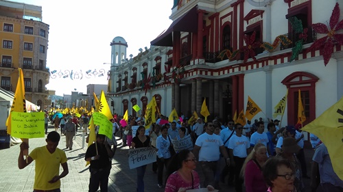 Horas más tarde, casi al filo de las dos y media arrancó la marcha convocada por el PRD del monumento de la Hermana Agua hacia el Congreso del Estado, aquí hay que señalar también, que el contingente estuvo más nutrido que las marchas que se han hecho con anterioridad, y era encabezado por Guadalupe Acosta Naranjo, Sonia Ibarra y Francisco Castellón.