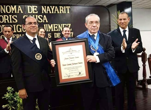 Por su parte, el también ex Secretario General de Gobierno y notario público en la actualidad, expresó que “ahora comparezco ante ustedes a recibir con humildad esta alta distinción, y me comprometo a prestar toda la ayuda que sea necesaria conforme a mi modesta capacidad para preservar el honor y prestigio académico del que goza la UAN, siempre que se me requiera por los órganos competentes”.