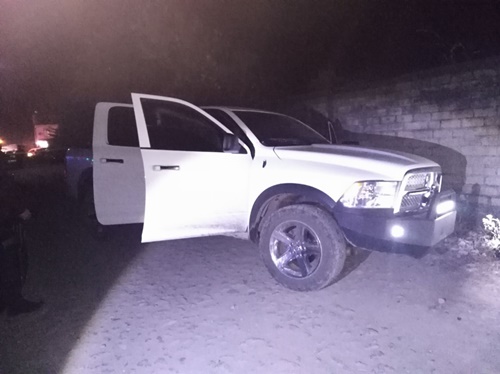 Asimismo, la SSPE da a conocer el aseguramiento de una camioneta marca Dodge Ram color blanco con blindaje hechizo, la unidad fue localizada por la avenida del Panteón entre Miguel Hidalgo y Juan Escutia en la localidad de San Cayetano, dicho vehículo se encuentra con neumáticos ponchados así como daños mecánicos, se presume que ésta participó en hechos delictivos y vandálicos.