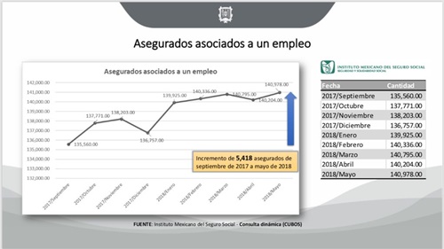 El empleo formal también ha crecido; en los primeros ocho meses del Gobierno de Antonio Echevarría se registraron 5 mil 418 nuevos asegurados al IMSS
