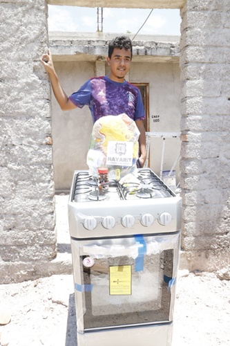 El área de Atención Ciudadana de la institución entregó a Manuel Alejandro Rivera Ruiz, de 19 años de edad y estudiante una licenciatura, una estufa para hornear y vender pasteles, panes y pizzas, y así poder obtener un ingreso económico durante esta contingencia.
