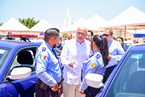 El doctor Navarro Quintero, al encabezar este importante evento, invitó a las y los nayaritas a sentirse orgullosos del estado que se está destacando rápidamente en todo el país y en el mundo, gracias a la forma de administrar lo que se tiene. Con esta última entrega de patrullas, en 7 meses se han alcanzado 90 nuevas unidades que se dispersaron por toda la entidad para cuidar la vida y patrimonio de los nayaritas, precisó el secretario de Seguridad Pública y Protección Ciudadana, Benito Rodríguez Martínez.