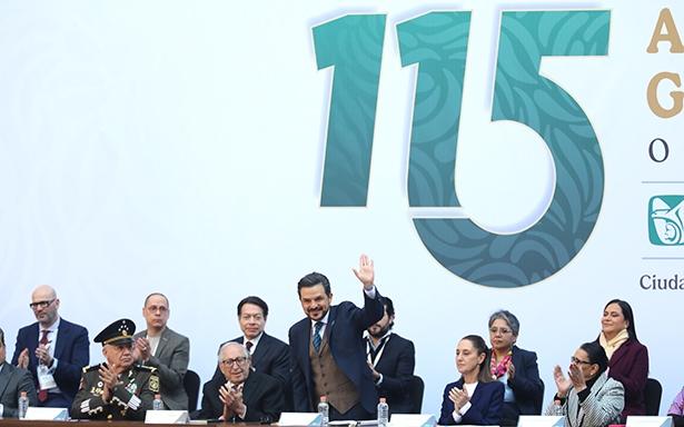 La presidenta de México, Claudia Sheinbaum Pardo, encabezó la 115 Asamblea General Ordinaria del IMSS, donde se entregaron los Reconocimientos a la Trayectoria Institucional a las doctoras Fryda Medina Rodríguez y Natividad Neri Muñoz. • El director general del IMSS resaltó que el rostro del Instituto es de apertura, ampliación, alianzas y atención primaria a la salud. • Al evento realizado en Palacio Nacional acudieron gobernadores, secretarios de estado, directores normativos, representantes del sector obrero-patronal y personal de todas las áreas que conforman el Instituto.