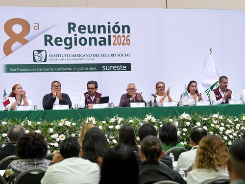 Encabezó la inauguración de la 8ª Reunión Regional que reunió a representantes del IMSS en Campeche, Chiapas, Oaxaca, Quintana Roo, Tabasco, Veracruz Norte y Sur, Yucatán.
