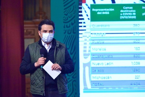 El Instituto Mexicano del Seguro Social (IMSS) ha implementado una estrategia de reconversión hospitalaria en ocho entidades ante el aumento de contagios por COVID-19, lo cual le permitirá crecer en un 39 por ciento para alcanzar hacia finales de enero 6 mil 116 camas adicionales para atención de pacientes en los estados de Querétaro, Hidalgo, Puebla, Morelos, Guanajuato, Nuevo León, Jalisco y Michoacán.