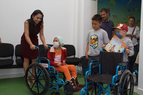 fortalece1La presidenta del Sistema DIF Nayarit, Ana Lilia López de Sandoval, visitó a los niños y niñas que reciben tratamiento en el área de oncopediatría del Centro de Cancerología de Tepic, a quienes entregó juegos electrónicos y regalos, además de sillas de ruedas para facilitar su traslado.