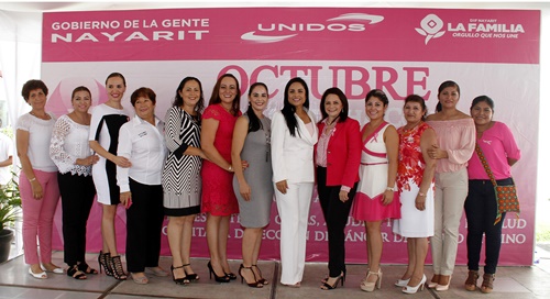 La presidenta del Sistema DIF Nayarit, Ana Lilia LópezdSandoval, encabezó el arranque de la campaña de lucha contra el cáncer de mama ‘Octubre Rosa’, en cuyo marco invitó a todas las mujeres a auto explorarse para prevenir esta enfermedad, la cual es curable si se detecta a tiempo.