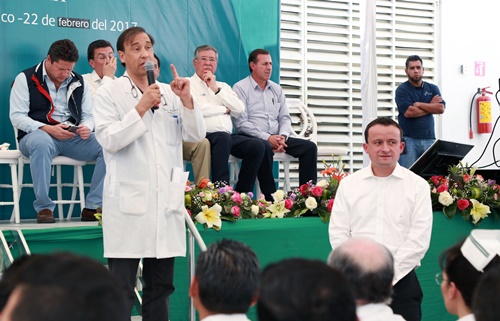 Al clausurar el Encuentro Médico Quirúrgico en Urología, el Director General del Instituto Mexicano del Seguro Social, Mikel Arriola, acompañado por el Secretario de Salud, César Gómez Monge, y autoridades del Gobierno del Estado de México, enfatizó que es un gran reto acercarle a las comunidades que no viven en las grandes ciudades, los servicios de salud en especialidades.