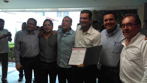 ¡Hijo e’ su! Por fin le fue entregada esta tarde la constancia de Gobernador Electo a Antonio Echevarría, quien representó en las pasadas elecciones a la Alianza Juntos por Ti, misma que estuvo conformada por los partidos PAN, PRD, PT y PRS, cabe señalar, que esto la entrega de constancia sucedió después de que sesionara el Consejo Local Electoral del IEEN.