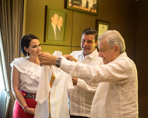 Al término de este diálogo, el gobernador Antonio Echevarría y su esposa, María Luisa Aguirre, entregaron al presidente electo de los mexicanos un cuadro hecho por artesanos nayaritas, en estambre y chaquira, que representa el ‘Águila Juarista’, así como otras piezas representativas de la cultura wixárika, artesanías hechas con el apoyo del DIF Nayarit.