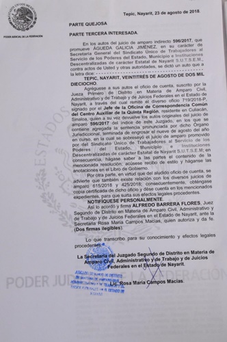 ¡Hijo e’ su! Un Juez Federal le da palo a la dirigente del SUTSEM Águeda Galicia Jiménez, bueno, así se entiende, pero en realidad el que pierde es el pueblo al seguir pagando a más de ochocientos trabajadores que les dio base a algunos, y re categorización a otros, el gobierno de Roberto Sandoval.