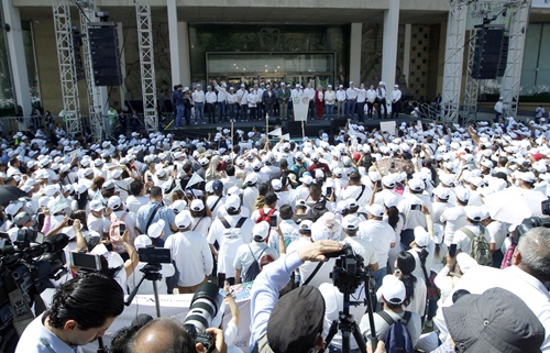 El contingente de trabajadores del SNTSS marchó del Centro Médico Nacional Siglo XXI a las oficinas centrales del Seguro Social, ubicadas en Paseo de la Reforma.