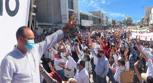 Al unísono de “Unidad sí, Imposición No” el contingente de Morena se concentró en la concha acústica del Parque la Loma, para realizar un recorrido de protesta en dirección a Av. México y Miñón, en contra de la Dirigencia Nacional abanderada por el ex Diputado Federal Mario Delgado y el Senador Presidente de la Bancada de Morena en el Senado, Ricardo Monreal, señalando a ambas figuras políticas de vendidos y traicioneros con el pueblo de Nayarit.