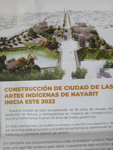 Y su preocupación se debe a que llegó a sus manos un folleto en donde se promociona el primer informe de Geraldine Ponce, en donde en una imagen en la página tres se ve cómo podría quedar el corredor turístico una vez concluida La Ciudad de las Artes Indígenas de Nayarit; se mira que no nada más será el lugar que ocupaba el derribado mercado Manuel Z. Larios, sino que dicho corredor se podría ampliar considerando un cuadro entre la avenida México y Durando o posiblemente más hacia el poniente y de la avenida Victoria hasta la calle Zaragoza y posiblemente también más allá, precisamente considerando la desaparición del mercado Juan Escutia, de ahí que este locatario piense que tal vez entre en los planes del corredor turístico la desaparición del mercado.