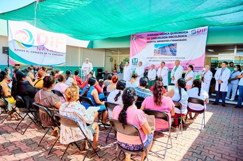 El gobernador del estado, Miguel Ángel Navarro Quintero y su esposa, la presidenta del Sistema DIF Nayarit, doctora Beatriz Estrada Martínez, encabezaron el arranque de la Primera Jornada Quirúrgica de Ginecología Oncológica, en el Hospital Bienestar Rosamorada, la cual tiene como objetivo beneficiar la salud de más de mil mujeres de la entidad, con la detección, tratamiento y cirugías en lesiones de matriz y mama.