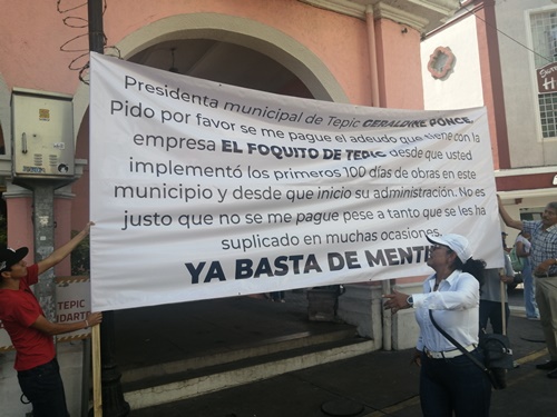 Hoy, la representante legal de un negocio denominado “El Foquito”, empresa que por décadas ha trabajado para los nayaritas, hoy se dio a conocer por un plantón que se hizo en la esquina de la calle Amando Nervo y la avenida México, que el ayuntamiento le debe una fuerte cantidad de dinero. Y esto no lo estamos inventando, y ejemplo claro fue la declaración que le dio a este medio informativo su representante legal. Dijo, -que desde el inicio del gobierno de Geraldine Ponce le fiaron mercancía para alumbrar algunas calles, el cerro de La Cruz, así como material para otras localidades como el Pichón, con la promesa de pronto pago.
