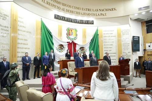 En Sesión Pública Solemne, la presidenta del Congreso de Nayarit, diputada Alba Cristal Espinoza Peña, a nombre de la Trigésima Tercera Legislatura recibió el segundo Informe de Gobierno del titular del Poder Ejecutivo, doctor Miguel Ángel Navarro Quintero.