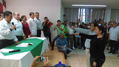 El líder priísta atestiguó la toma de protesta de Ramiro Santana y Yahaira Constante, al frente del Comité Municipal de Santiago, Ixcuintla