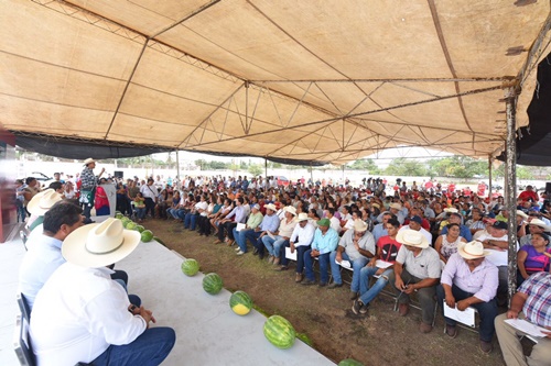 El Gobernador Roberto Sandoval Castañeda entregó equipos para la tecnificación del riego a productores de sandía y maíz de las comunidades de San Vicente, San Juan de Abajo, Valle de Banderas y San José del Valle, municipio de Bahía de Banderas, en los que se invirtieron aproximadamente 5 millones 400 mil pesos, sin deuda pública para el estado.