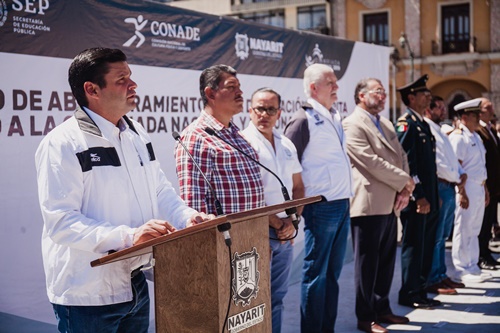 El Gobernador Antonio Echevarría García abanderó este jueves a la delegación de deportistas nayaritas que representarán al estado en la Olimpiada Nacional y Nacional Juvenil 2019, a realizarse del 3 de mayo al 17 de junio en Quintana Roo como sede principal, así como en las subsedes de Aguascalientes, Chihuahua, Colima, Guanajuato, Nayarit y Yucatán.