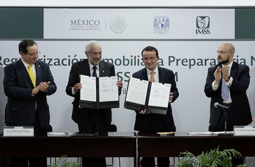 El rector Enrique Graue; el director del IMSS, Tuffic Miguel, y el titular de Fundación UNAM, Dionisio Meade, entregaron los reconocimientos